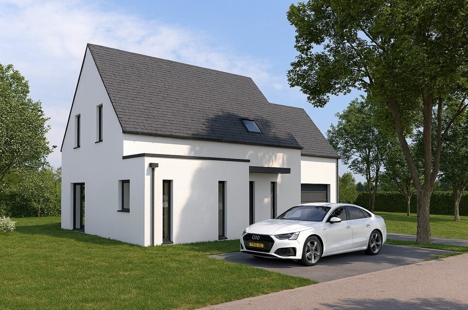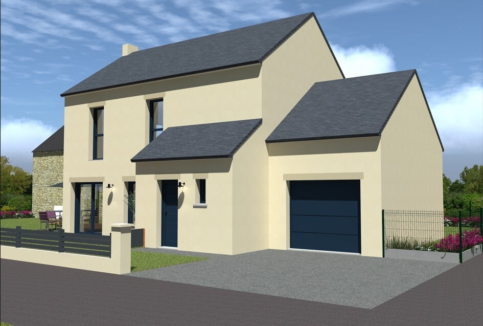 maison a deux pentes de 45° sous combles aménagé avec un garage et un cellier grande pièce de 37 m² de salon séjour cuisine, 3 belles chambres dont une au RDC avec sde, un salle de bains et wc . Pièce de 20 m² non isolé au dessus du garage pour chambre future. tout le confort, meubles de salle de bain 100 + 60 et 1 douche incluse 90*90, 1 baignoire incluse . model présenté 175500 euros TTC ( hors évacuation des terres) DOMMAGE OUVRAGE INCLUS. Honoraires maitre d'oeuvre inclus